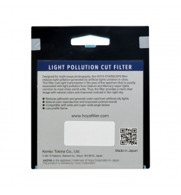 Filtr HOYA STARSCAPE je určený pro fotografování noční oblohy. Filtr snižuje světelný smog noční oblohy a snižuje i žlutý a zelený závoj. Zvyšuje celkový kontrast a přispívá tak k přirozené reprodukci barev snímku. Filtr STARSCAPE je zasazený do nízké obroučky vyrobené z hliníku se závitem i na přední straně.