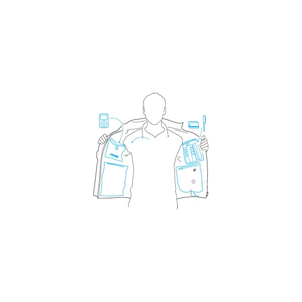 Bunda je vybavena sadou vnějších kapes, které umožňují fotografovi mít při ruce vše potřebné. Dvě hlavní kapsy jsou vybaveny vyjímatelnými vycpávkami. Kapsy lze rozšiřovat pomocí dvou postranních zipů a jsou přizpůsobeny pro ukládání objektivů, blesků a dalšího příslušenství. Dvě další malé kapsy na hrudi jsou určeny pro menší části vybavení a obsahují držák na průkaz. Dvojitou kapsu na zádech lze použít k uložení několika položek včetně stativu Traveler nebo láhve s vodou.
