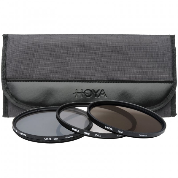 Sada 3 ks filtrů Hoya obsahuje UV filtr Hoya UV(C) HMC, cirkulární polarizační filtr Hoya PL-C a neutrální šedý filtr Hoya ND 8x. Filtry mají vícevrstvou povrchovou úpravu a jsou dodávány včetně praktického nylonového pouzdra.